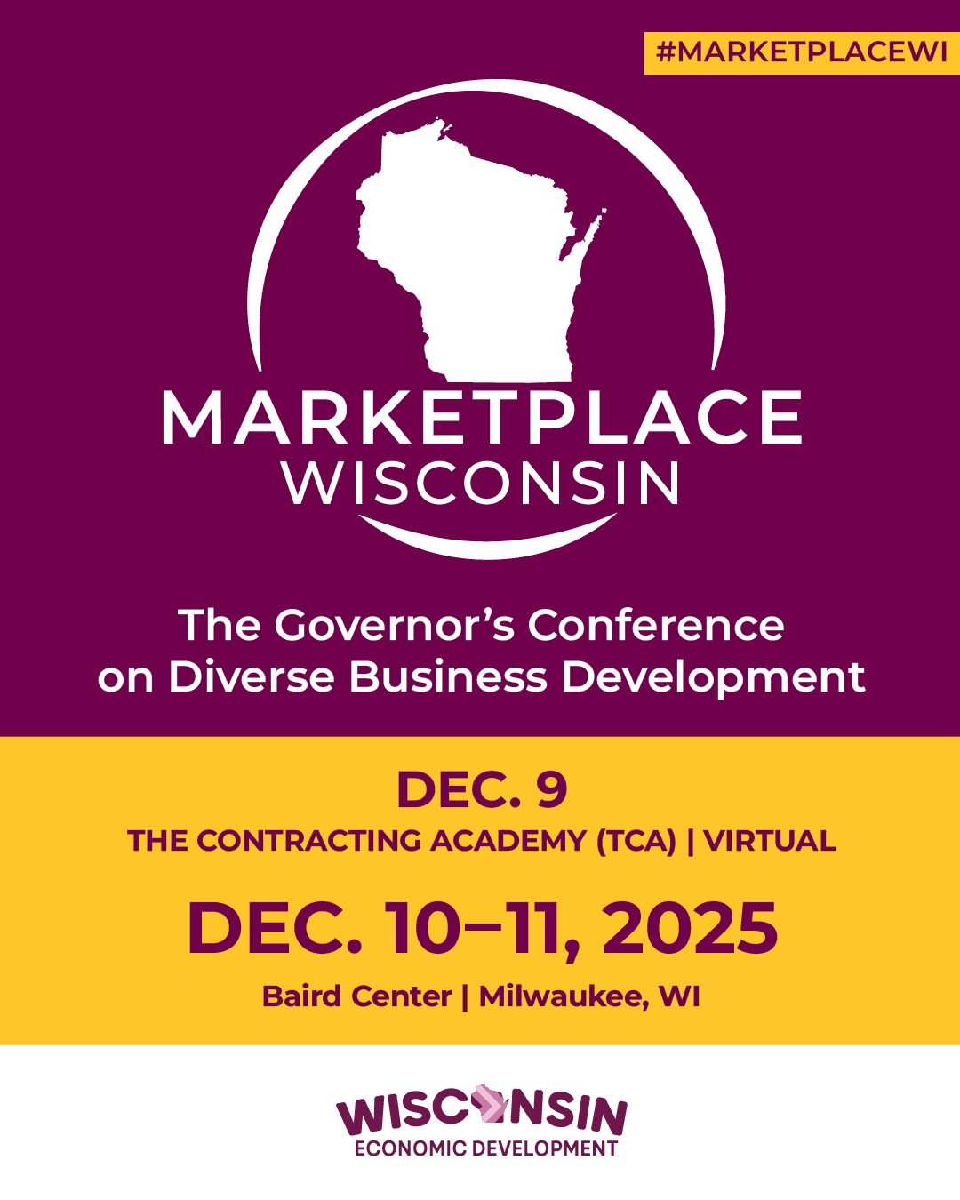 This toolkit provides suggested copy for several social media posts you can use for your social channels to help you network and drive attendees to the 44th MARKETPLACE WISCONSIN, the Governor’s Conference on Diverse Business Development. The event will be held on Dec. 10 – 11 at the Baird Center in Milwaukee, and virtual sessions for The Contracting Academy will be held on Dec. 9.