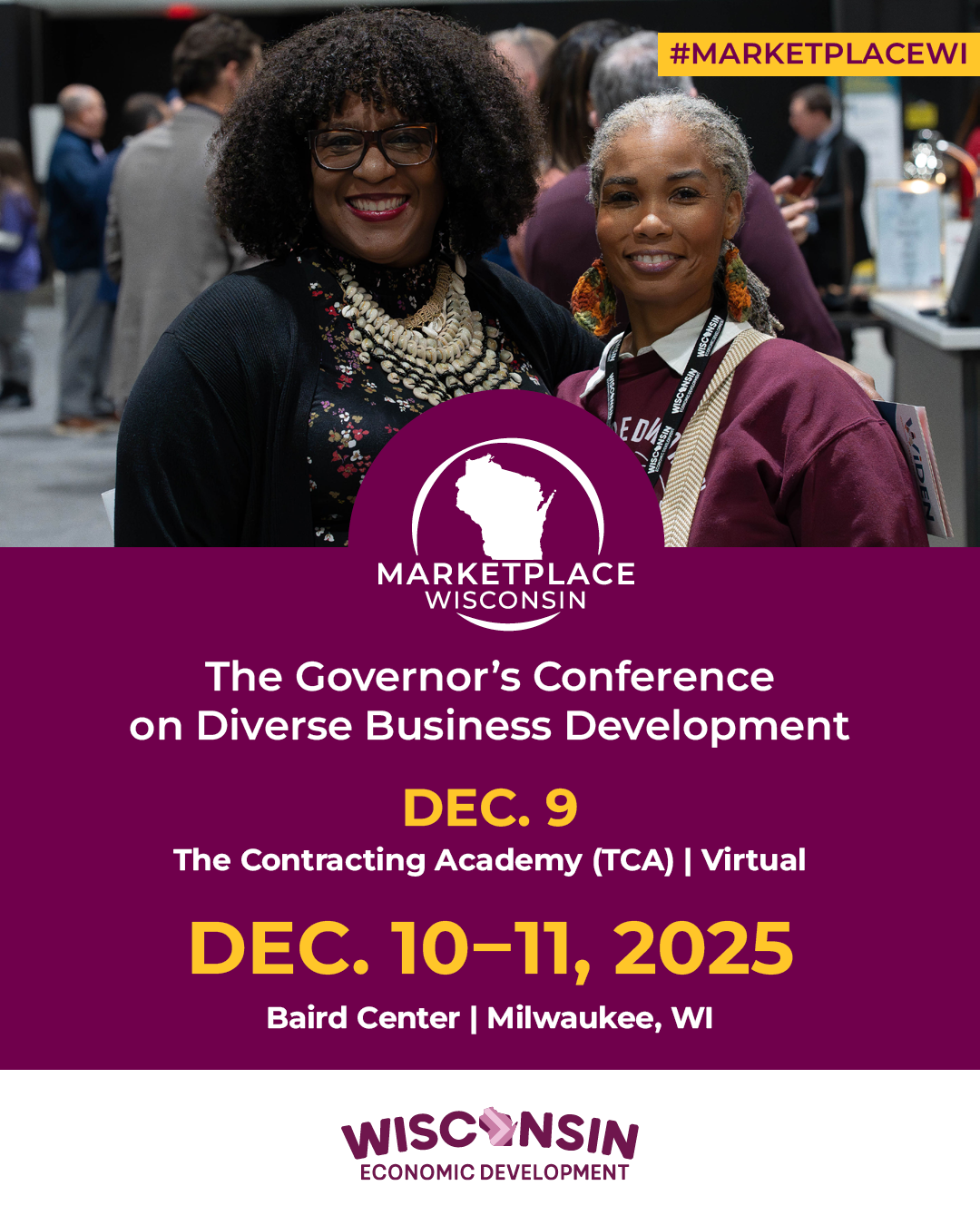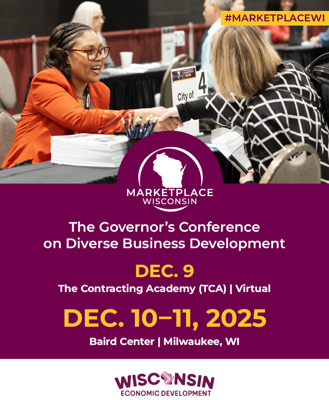 Now is the perfect time to register for Marketplace Wisconsin! If you want to find new ways to grow your business, then this is the event for you! You can join us on Dec. 9 virtually or in Milwaukee on Dec. 10-11 for a chance to connect with resources to help form new partnerships.